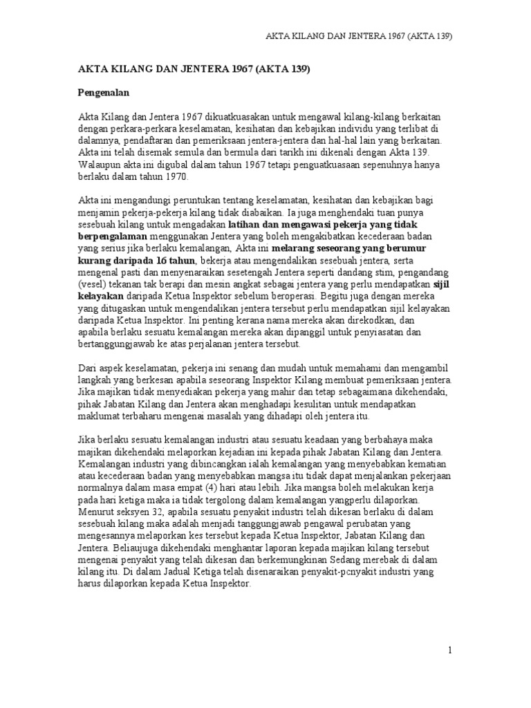 Akta Kilang Dan Jentera 1967 Akta 139 Pdf