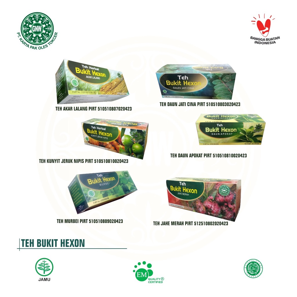 Pilih Warna atau Produk Lainnya. TEH HERBAL BUKIT HEXON Teh Akar Lalang Teh Beras Merah Teh Bluntas Kelor Teh Apokat Teh Intaran Teh Kunyit. Mengurangi kadar kolesterol dalam tubuh 3.